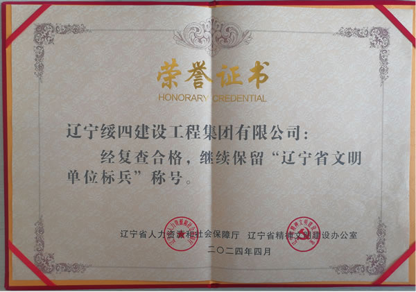 近日,經(jīng)復(fù)查合格,遼寧綏四建設(shè)工程集團(tuán)有限公司繼續(xù)保留“遼寧省文明單位標(biāo)兵”稱號(hào)。