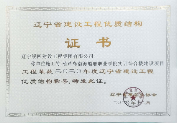 “葫蘆島渤海船舶職業(yè)學(xué)院實訓(xùn)綜合樓建設(shè)項目”榮獲2020年度遼寧省建設(shè)工程優(yōu)質(zhì)結(jié)構(gòu)稱號