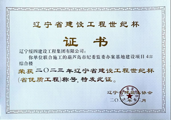 葫蘆島市紀委監(jiān)委辦案基地建設項目4#綜合樓 榮獲2023年遼寧省建設工程世紀杯(省優(yōu)質工程)稱號