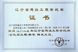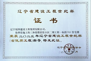 三和榮郡居住小區(qū)二期工程一標(biāo)段9#住宅樓 榮獲2023年遼寧省建設(shè)工程世紀(jì)杯(省優(yōu)質(zhì)工程)稱號