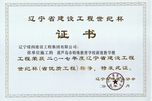 “葫蘆島市特殊教育學(xué)校新建教學(xué)樓工程”榮獲2017年度遼寧省建設(shè)工程世紀(jì)杯稱號