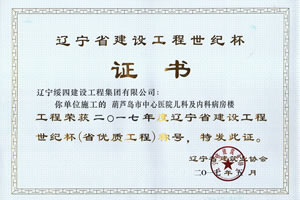 “葫蘆島市中心醫(yī)院兒科及內(nèi)科病房樓”榮獲2017年度遼寧省建設(shè)工程世紀(jì)杯稱號