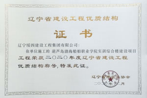 “葫蘆島渤海船舶職業(yè)學(xué)院實(shí)訓(xùn)綜合樓建設(shè)項目”榮獲2020年度遼寧省建設(shè)工程優(yōu)質(zhì)結(jié)構(gòu)稱號