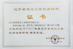 “葫蘆島三和恬園小區(qū)二期工程15#樓”榮獲2020年度遼寧省建設(shè)工程優(yōu)質(zhì)結(jié)構(gòu)稱號