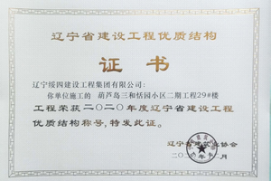 “葫蘆島三和恬園小區(qū)二期工程29#樓”榮獲2020年度遼寧省建設(shè)工程優(yōu)質(zhì)結(jié)構(gòu)稱號