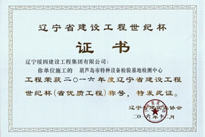 “葫蘆島市特種設(shè)備檢驗(yàn)基地檢測中心”榮獲2016年度遼寧省建設(shè)工程世紀(jì)杯稱號(hào)