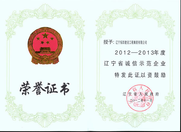 遼寧省誠信示范企業(yè)