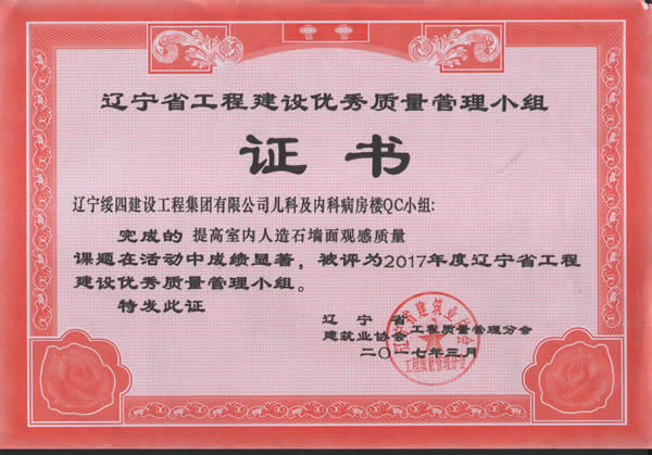 遼寧省工程建設(shè)優(yōu)秀質(zhì)量管理小組