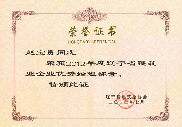 遼寧省建筑企業(yè)優(yōu)秀經(jīng)理