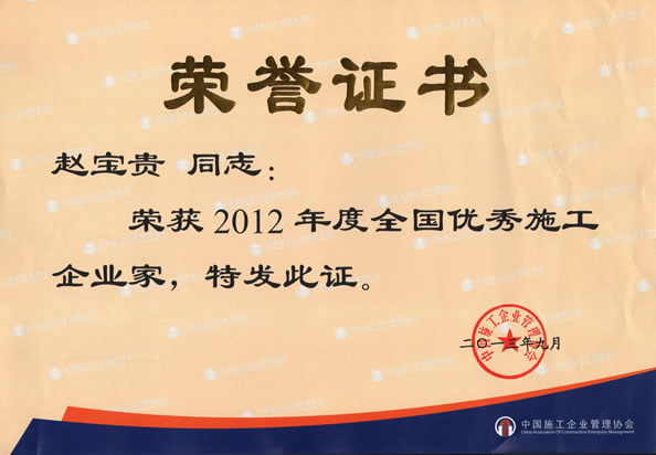 全國(guó)優(yōu)秀施工企業(yè)業(yè)家