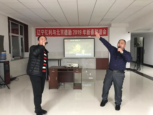 值此新春佳節(jié)之際,作為東道主的我們?yōu)榱吮硎緦Φ虑诠就碌臒崃覛g迎與新春祝福,當晚,在領導的安排下,我公司舉辦了一場“遼寧億利與北京德勤2019年新春聯(lián)誼會”。聯(lián)誼會上大家積極踴躍的表演才藝,機電設備部部長潘曉閣和機電設備部賀善強師傅高歌一首《眾人劃槳開大船》將整個聯(lián)誼會推上了高潮。