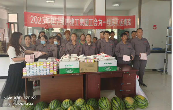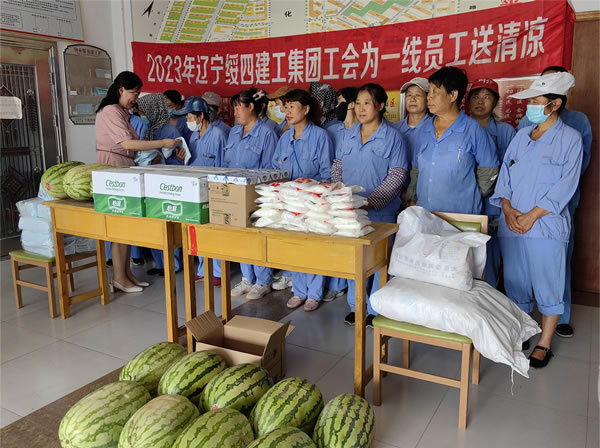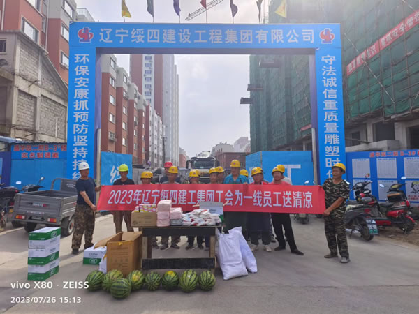 7月25日—28日,遼寧綏四建設(shè)工程集團(tuán)有限公司開展送清涼活動。集團(tuán)董事長趙寶貴親自布置,黨支部書記張艷舫、工會主席薛桂枝、所屬企業(yè)相關(guān)負(fù)責(zé)人房建、喬揚(yáng)、王剛分別帶隊(duì),慰問高溫下堅(jiān)守在一線的員工們。