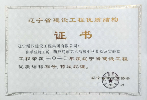 “葫蘆島市第六高級(jí)中學(xué)食堂及實(shí)驗(yàn)樓”榮獲2020年度遼寧省建設(shè)工程優(yōu)質(zhì)結(jié)構(gòu)稱(chēng)號(hào)